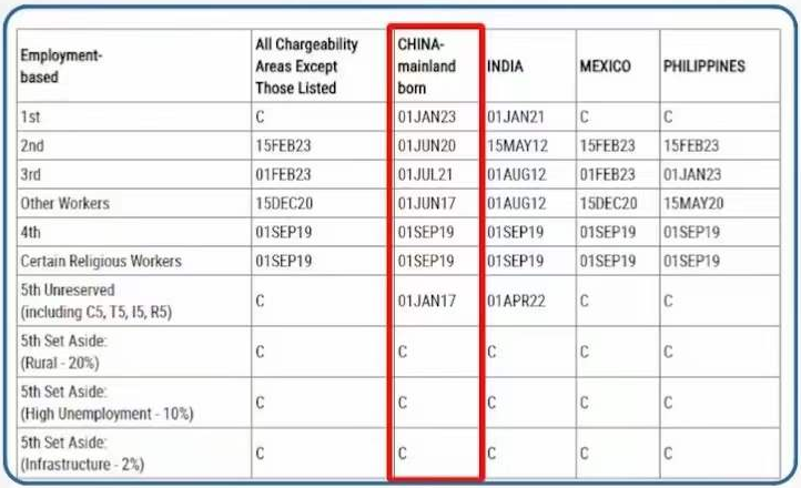 EB-1(杰出人才):排期排到2023年1月1日,原地踏步;